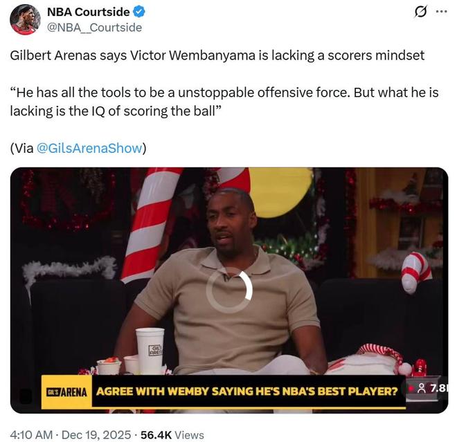 其中阿里納斯就在節目中表示,文班亞馬顯然擁有成為一名頂尖得分手的所有條件,但他目前缺少得分的籃球智商。